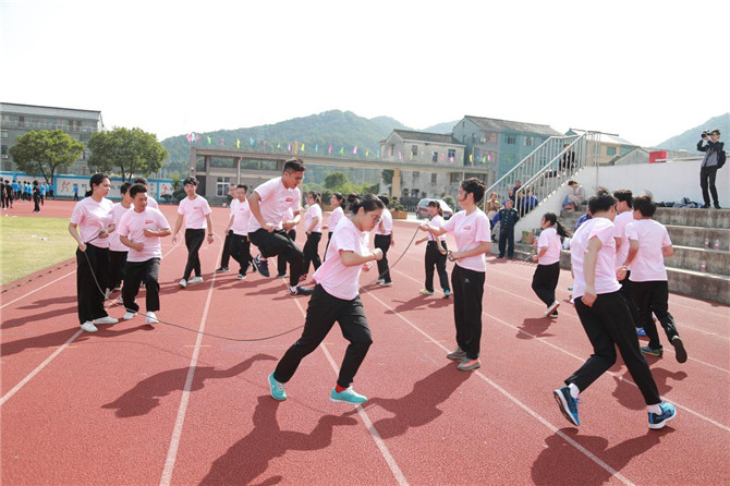 Group skipping and rdquo.A team of 20 people participated in the competition, two of them swayed the rope, and the remaining 18 skipped the rope in turn. In the course of the match, some teams stumbled on the rope, some teams reacted steadily, and some teams stumbled over the rope several times in a row. In the end, the administrative center team jumped 235 times in 3 minutes to get a & ldquo. group skipping and rdquo. first place in a single competition.